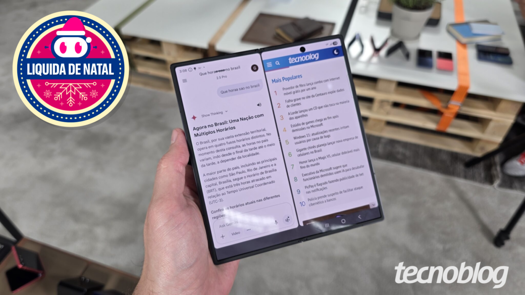 O Galaxy Z Fold 7 está com 41% de desconto no 12.12 de Natal da Amazon, saindo por R$ 9.849 em até 12x sem juros com o cupom de 10% OFF disponível na página do produto. A promoção é válida para o modelo com 1 TB de armazenamento, lançado em julho de 2025 por R$ 16.599.