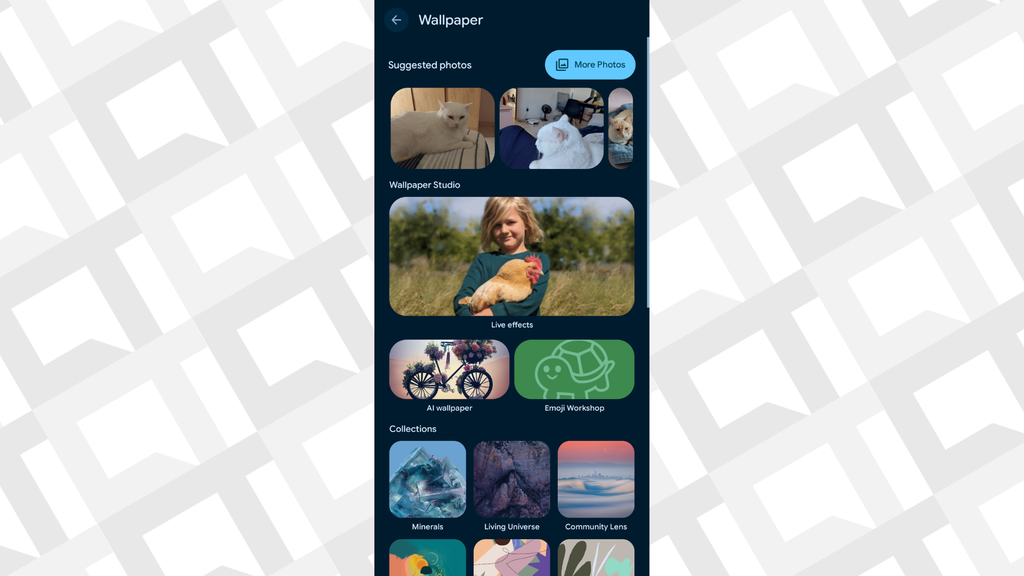 O Android na linha Pixel traz opções diferentes para personalizar o papel de parede, incluindo um modo para criar imagens de fundo com IA. Além disso, é possível criar telas de bloqueio dinâmicas com fotos da galeria e até montar uma imagem estampada com seus emojis favoritos.
