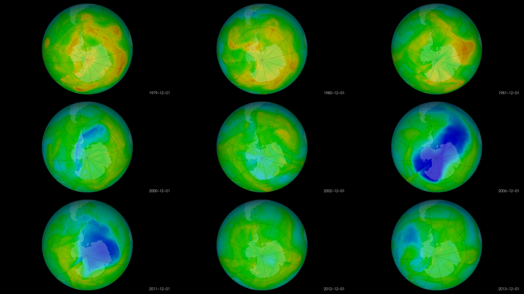 Camada de ozônio através dos anos (Imagem: NASA/Wikimedia Commons)