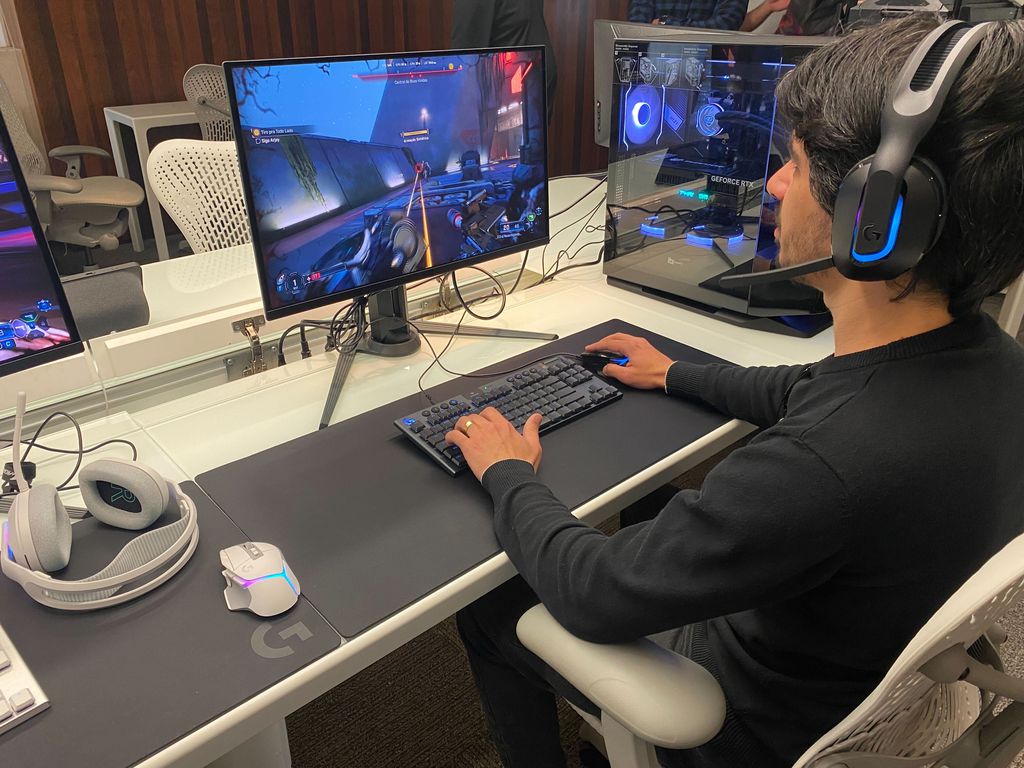 Depois de uma apresentação feita por Alexandre Ziebert, responsável pelo marketing técnico da NVIDIA Brasil, além de André Forte, gerente de relações públicas, tivemos a oportunidade de experimentar máquinas que são sonhos de consumo de qualquer PC gamer: todas equipadas com GeForce RTX 5090 de diferentes fabricantes, além de CPUs topo de linha como o Ryzen 9 9950X3D.