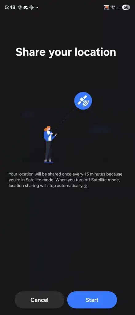 Segundo o leaker ThatJoshGuy, a versão mais recente do app (1.8.00.16) já traz referências a uma página dedicada ao “modo satélite”. O recurso ainda não está liberado para os usuários, mas a descrição indica que ele seria capaz de enviar automaticamente a localização a cada 15 minutos. Dessa forma, familiares e amigos poderiam acompanhar onde a pessoa está, mesmo em regiões remotas.