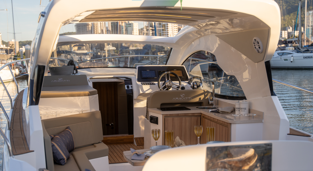 A nova lancha Armatti 400 Sport Coupé foi apresentada em julho no Boat Show, em Santa Catarina, para redefinir o padrão de embarcações premium no Brasil e no exterior. Com design arrojado, tecnologia de ponta e alto nível de conforto, a embarcação com DNA brasileiro promete design e funcionalidade sem deixar de lado o conforto de alto padrão.
