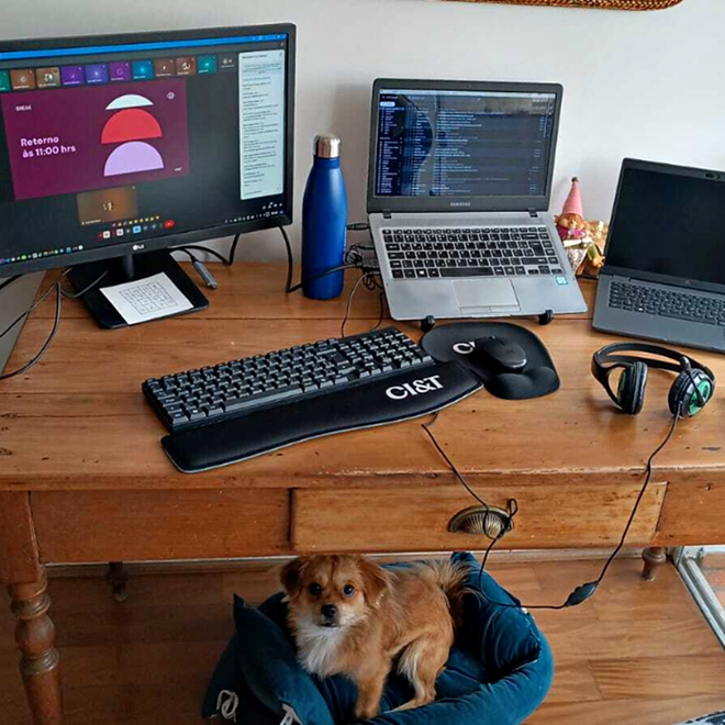 E a persistência deu resultado: hoje Luis trabalha com o que sempre quis. É desenvolvedor Front-End em uma empresa global de tecnologia, trabalha de casa e conta com diversos benefícios.
