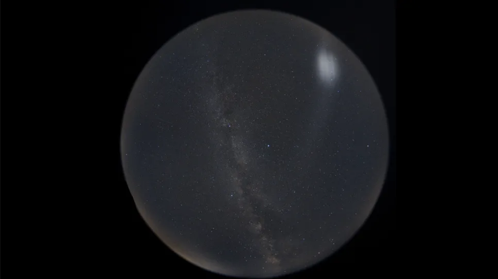 Pois bem, a pluma estava repleta de partículas que congelaram e refletiram a luz do Sol, tornando-se brevemente visível a olho nu. Um dos registros mais notáveis foi feito por Gianluca Masi, do projeto Virtual Telescope, na Itália. O astrônomo capturou a pluma no céu de Manciano, em contraste com a faixa da Via Láctea.