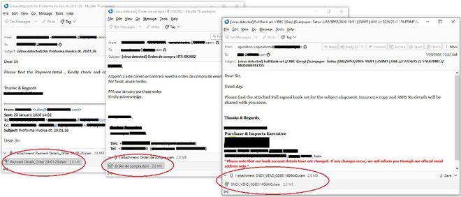 Apostando em engenharia social para que o e-mail pareça urgente, os hackers enviam mensagens burocráticas aos usuários para tentar fisgá-los por meio de documentos, consultas comerciais e pedidos de compra.