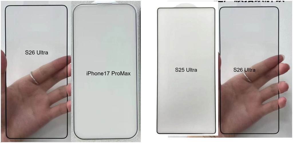 A mudança no design responde às críticas sobre o S24 e S25 Ultra serem “afiados” demais. Imagens de películas de vidro temperado mostram que o S26 Ultra será mais arredondado que o S25 Ultra, mas ainda manterá o visual “quadradão” quando comparado ao iPhone 17 Pro Max, por exemplo.