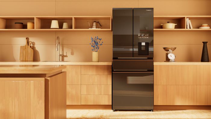 Nova geladeira premium da Panasonic tem porta de vidro Dark Glass espelhado (Imagem: Divulgação/Panasonic)