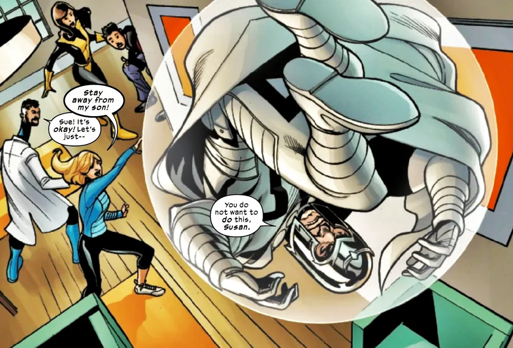 Quando Ciclope vai levar o Dentes de Sabre para Krakoa, o Quarteto Fantástico diz que a fera está sob sua custódia e impede o líder dos X-Men de levá-lo para casa. Scott Summers provoca Reed e Sue Richards, dando as costas e dizendo para o filho deles, que é um mutante, procurá-lo quando estiver pronto — a irritação causada nos pais é visível.