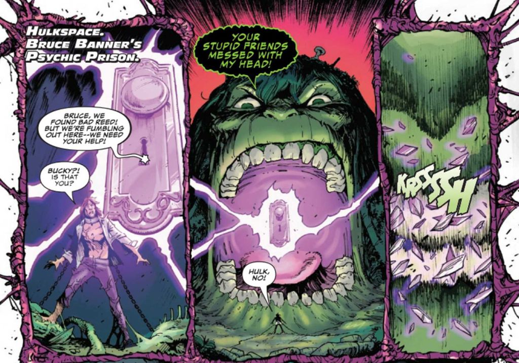 Só que não. Hulk simplesmente destrói o feitiço com os dentes, em uma das cenas mais simbólicas de toda sua trajetória. E não é a primeira vez que os roteiristas dão pistas dessa habilidade. O Gigante Esmeralda já tinha resistido ao feitiço de Doutor Estranho que apagou a identidade do Homem-Aranha da memória coletiva.