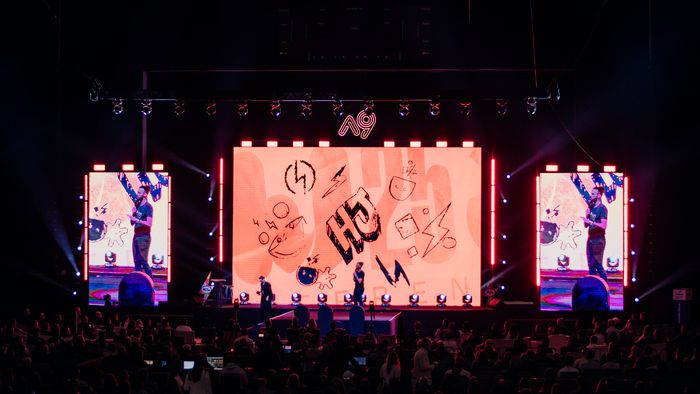 Na metade do dia, na plenária A9 Educação, o ator e humorista Rafael Cortez trouxe uma perspectiva mais humana e autobiográfica sobre a reinvenção em tempos de mudança.