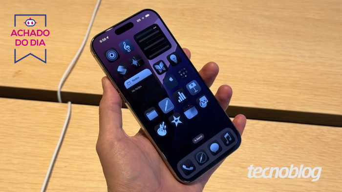 O celular é equipado pela tela Super Retina XDR OLED com tamanho compacto de 6,1 polegadas e resolução de 2.556 x 1.179 pixels. As imagens são geradas com cores mais intensas e o suporte a HDR10 e Dolby Vision adaptam o contraste e brilho em conteúdos compatíveis. O painel ainda possui revestimento do Ceramic Shield.