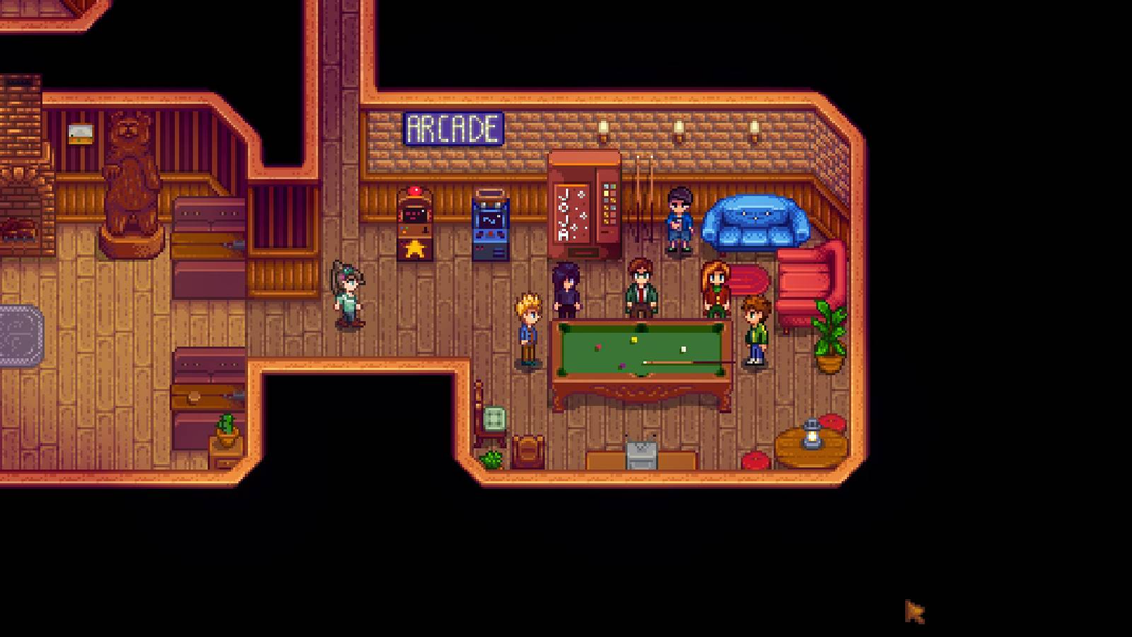 O RPG de fazendinha criado por uma única pessoa, Stardew Valley, é bastante conhecido pela vastidão de conteúdo e pelas possibilidades que a vida no campo proporciona. Entre caça-níqueis, dardos e cartas, o título oferece diversos minijogos e referências ao mundo dos games.