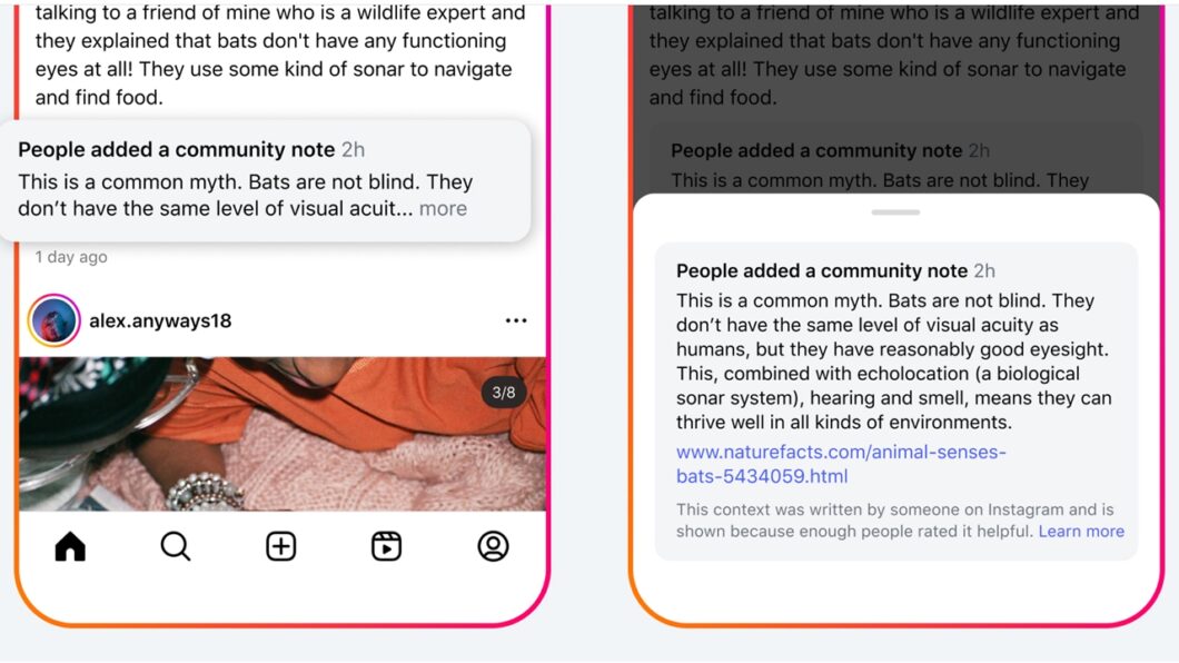 Tal como acontece no X, a Meta espera que, com o novo mecanismo, os próprios usuários sinalizem quando uma publicação no Facebook, Instagram ou Threads apresenta informações inverídicas ou inconsistentes, e informem links que corrigem ou comprovem a imprecisão do conteúdo.