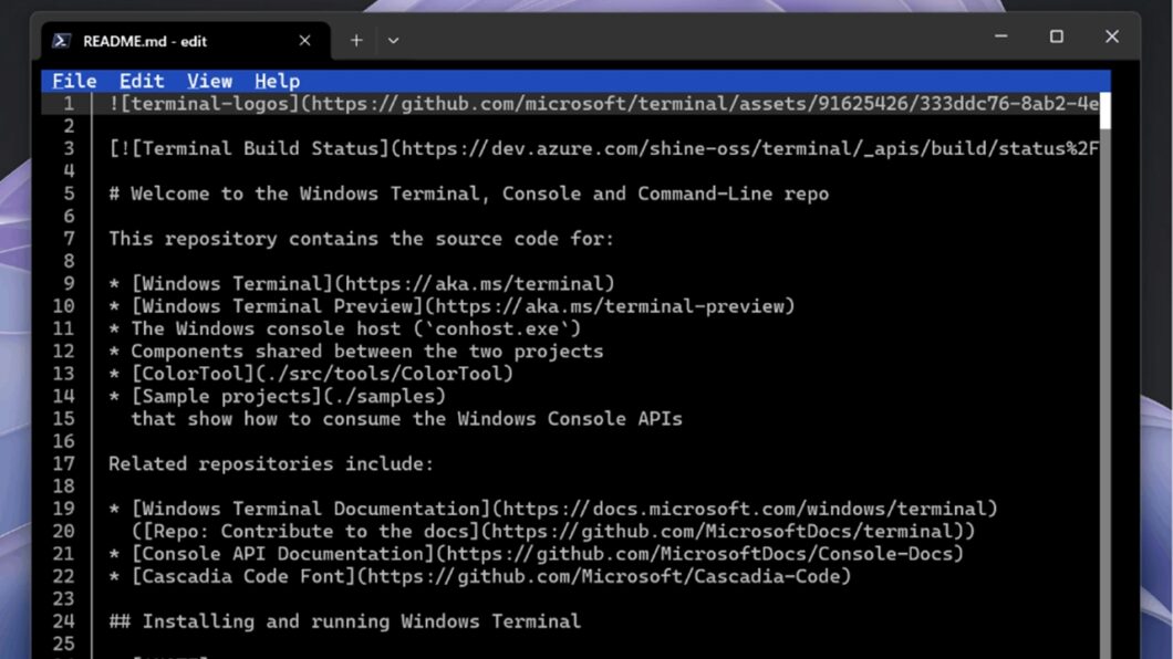 - Edit é um editor de texto de linha de comando com código-fonte aberto, já disponível para download no GitHub, e que funciona tanto no Windows 11 quanto no Windows 10;