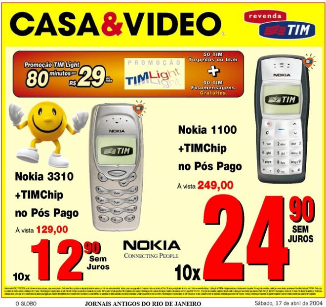 Anúncio do Nokia 1100 no jornal O Globo, publicado em 2004 (Reprodução/Facebook)