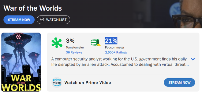 A Guerra dos Mundos é massacrado no Rotten Tomatoes