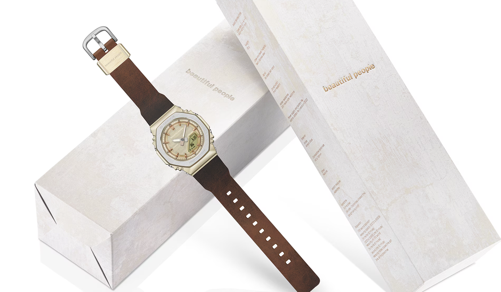 A Casio acaba de apresentar um novo relógio G-Shock que aposta em sofisticação sem abrir mão da resistência tradicional da linha. A colaboração com a marca japonesa de moda Beautiful People resulta no modelo GM-S2110BP-5A, que chama atenção principalmente pela pulseira que imita couro.