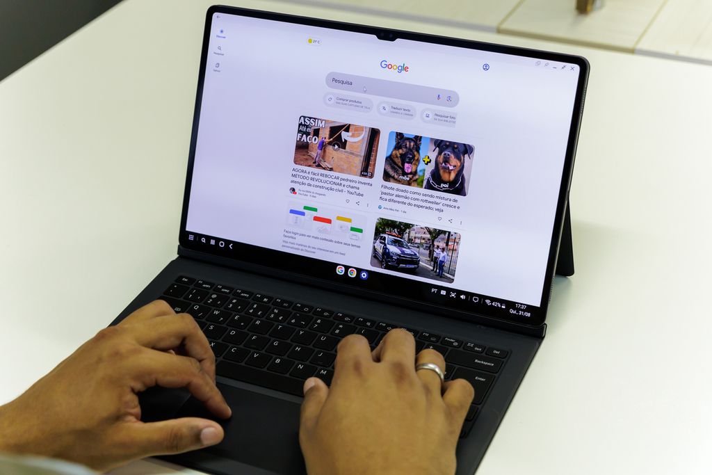 As capas com teclado transformam o tablet em um “laptop compacto”, e permitem digitação confortável para trabalhos mais extensos. Essa combinação torna os tablets mais completos para tarefas profissionais e acadêmicas do que a maioria dos dobráveis.