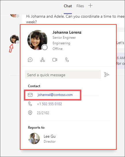 Para encontrar a etiqueta no Teams é fácil: basta passar o mouse ao lado do nome do usuário no card de perfil e ela estará lá indicada como “Externo” ou “Convidado” (pessoa que foi adicionada às permissões da equipe).