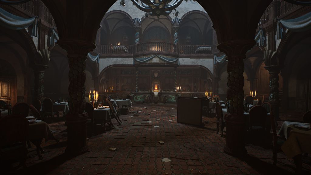 A maior parte dos cenários são prédios antigos, ruas de vilas, ambientes internos, que são bastante detalhados, vale destacar. Temos também fábrica, cavernas e outros cenários. O game é bonito, esse é um benefício da Unreal Engine 5. Os interiores são bastante detalhados, com texturas de alta resolução, sombras convincentes, um belo trabalho nesse aspecto.