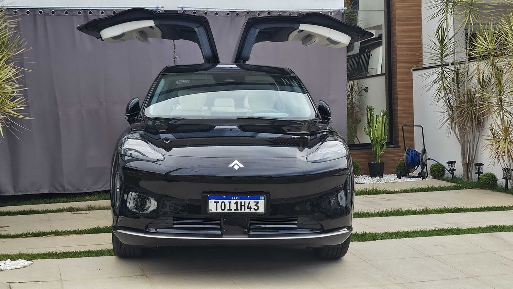 O design futurista, que se assemelha um pouco com Porsche Taycan e Tesla Model X, referências no segmento dos elétricos de luxo, já poderia ser suficiente para colocar o SUV coupé chinês como centro das atenções ao passar pelas ruas. Há, no entanto, um ponto ainda mais “instagramável”, incapaz de passar despercebido quando o carro está estacionado.