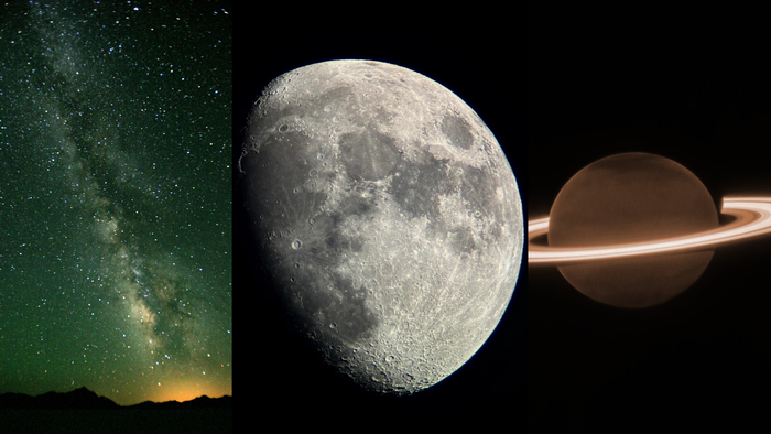 Saturno é visível a olho nu no céu noturno, mas aparece apenas como uma estrela branco-amarelada. Com um telescópio, no entanto, é possível conferir seus magníficos anéis, feitos de bilhões de partículas — em sua maioria, gelo —, desde microscópicas a montanhas de quilômetros de largura. Levando 29,5 anos para orbitar o Sol, o planeta era o mais distante conhecido aos antigos, que conferiram o nome do deus romano mais poderoso a ele.
