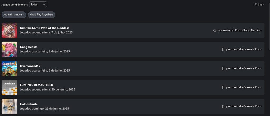Com o novo histórico, os jogadores poderão visualizar rapidamente os últimos títulos jogados em todas as plataformas onde a marca está presente, seja de forma nativa ou via streaming. A ferramenta também permite filtrar por jogos da nuvem e títulos com a função Play Anywhere.