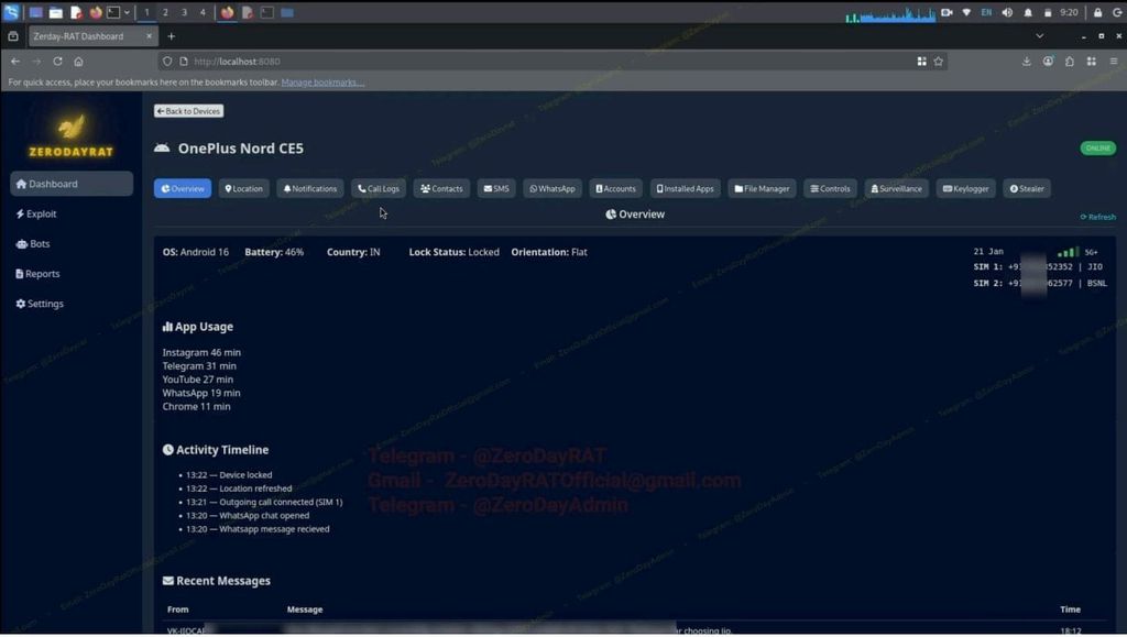 De acordo com a pesquisa da iVerify, o malware em questão é o ZeroDayRAT, um software malicioso que oferece aos cibercriminosos a possibilidade de gerenciar aparelhos comprometidos à distância. O esquema possui suporte até mesmo para versões mais recentes dos sistemas visados, como o iOS 26 e o Android 16.