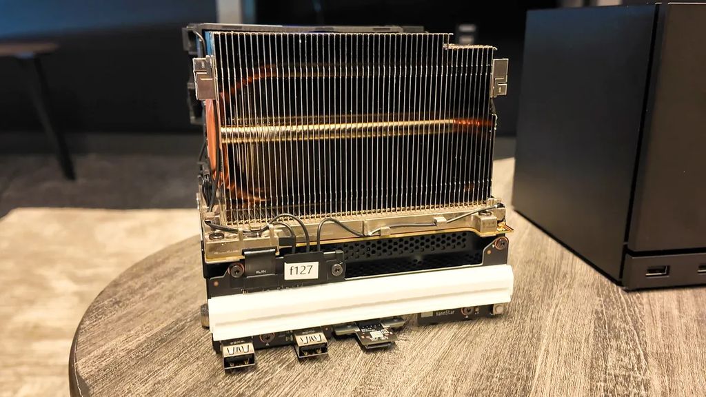 Em termos de processador, o mini PC está bem suprido, já que é equipado com uma CPU AMD Zen 4 de seis núcleos e 12 threads, possivelmente um Ryzen 5 7600. Para efeito de comparação, a CPU dos consoles da Sony e Microsoft contam com 8 núcleos, mas baseados em Zen 2, uma arquitetura já antiga, presente nos Ryzen 3000 nos PCs.