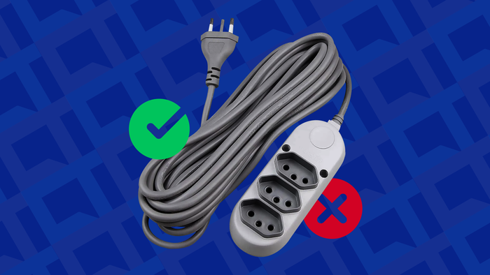 Outro erro comum é conectar múltiplos aparelhos em uma única extensão, prática que pode causar sobrecarga e superaquecimento. Mehl reforça que, de forma geral, “a extensão é feita para um único aparelho”.