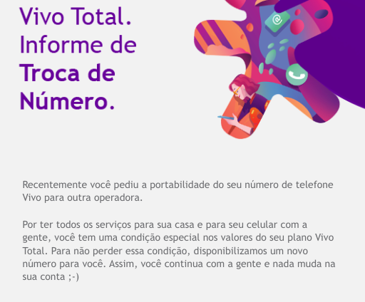 Antes disso, ele havia sido avisado por e-mail que “um novo número foi gerado” para que ele seguisse usando o Vivo Total normalmente.