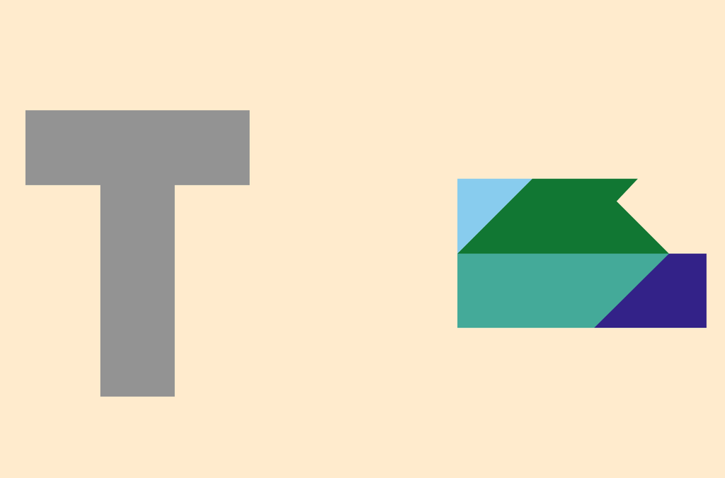 O objetivo é reorganizar quatro peças geométricas para formar a letra T perfeita.