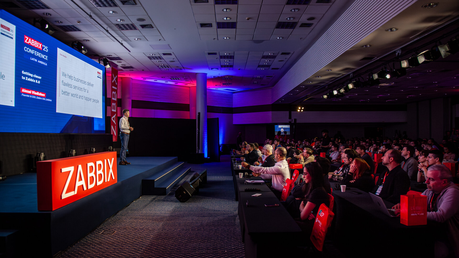 “A definição do Zabbix vai mudar para cobrir todos os tipos de infraestrutura, tecnologias emergentes e dados estruturados, exibindo informações de um jeito ainda mais compreensível para humanos”, anunciou Vladishev no evento.
